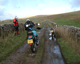 It was February 2000 and after several continuous weekends with rain it was dry and we were raring to go, thats me, Ian and Neil. I was riding a Honda XLR 250 Baja, they were both on Kawasaki KLR 250's. Our days laning started at Horton in Ribblesdale in the Yorkshire Dales, we headed due north up Langstrothdale Road which is a nice easy road with a good solid surface. We had only gone a couple of miles when Neils bike started coughing and spluttering - looked like muck in the carbs, we couldn't fix it without a carb-strip so we persevered and hoped ity wouldn't get worse (see right). |